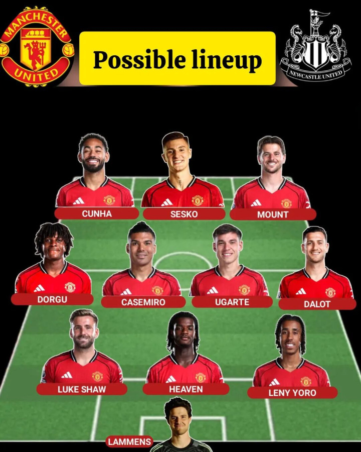 7名球员的缺席,让阿莫林的人员选择捉襟见肘,他在锋线上只有库尼亚、梅森·芒特、谢什科和齐尔克泽可用,中场球员只有卡塞米罗、乌加特和客串的利桑德罗·马丁内斯,中卫则是莱尼·约罗、埃登·海文、卢克·肖和利马,边卫更仅有迪奥古·达洛和帕特里克·多古。