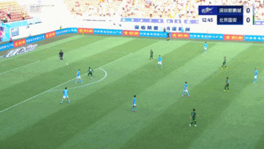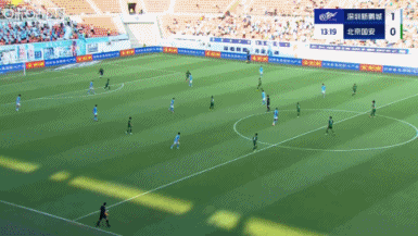 10月18日讯 国安vs新鹏城赛事 第13分钟,韦斯利顶球摆渡,