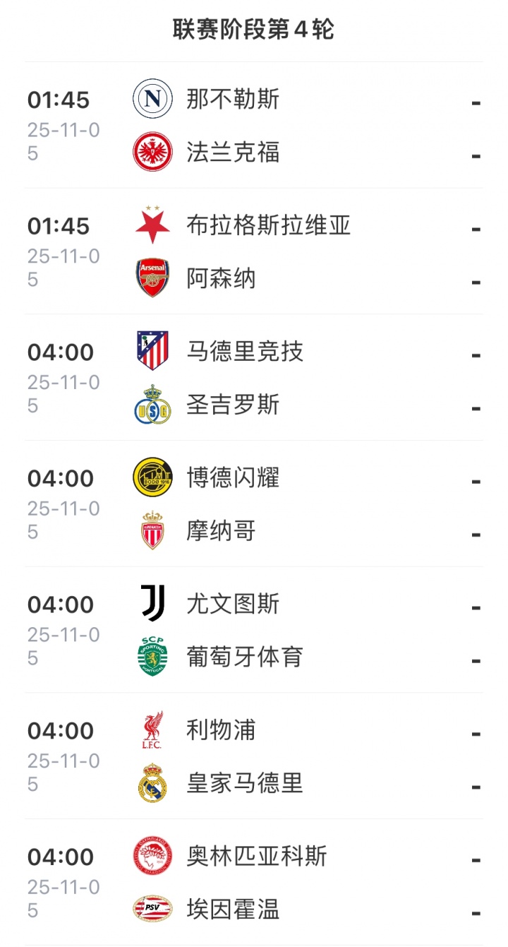 10月23日讯 欧冠第3轮赛事 全部结束,36支球队在2天内打完了18场赛事 。第4轮赛事 将在北京时间11月5日-6日凌晨进行,欧洲杯直播将依旧在2天内打完18场赛事 。