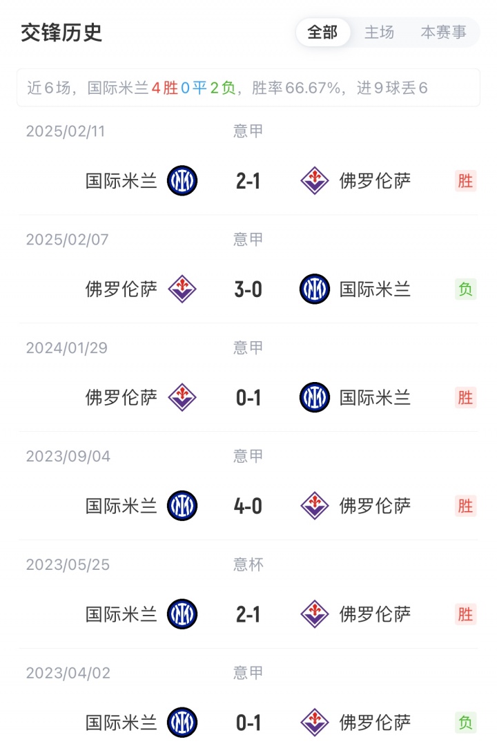 国米职业联赛 5胜3负积15分,上轮客场应战 1-3不敌那不勒斯,终结职业联赛 4连胜;佛罗伦萨开局8轮不胜积4分。国米主场作战 对阵佛罗伦萨已3连胜。