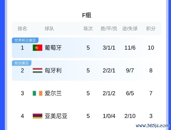 如果葡萄牙输球且爱尔兰赢球,则两队将按净胜球、总得分 数和相互战绩比较(爱尔兰占优),欧洲杯直播吧爱尔兰小组第一直通,葡萄牙小组第二进附加赛。